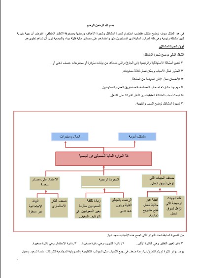 في هذا المثال سوف نوضح بشكل مقتضب استخدام شجرة المشاكل وشجرة الأهداف